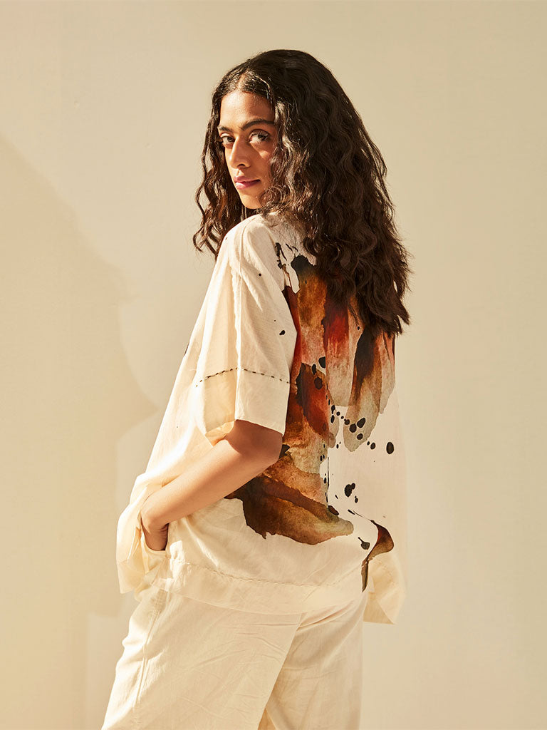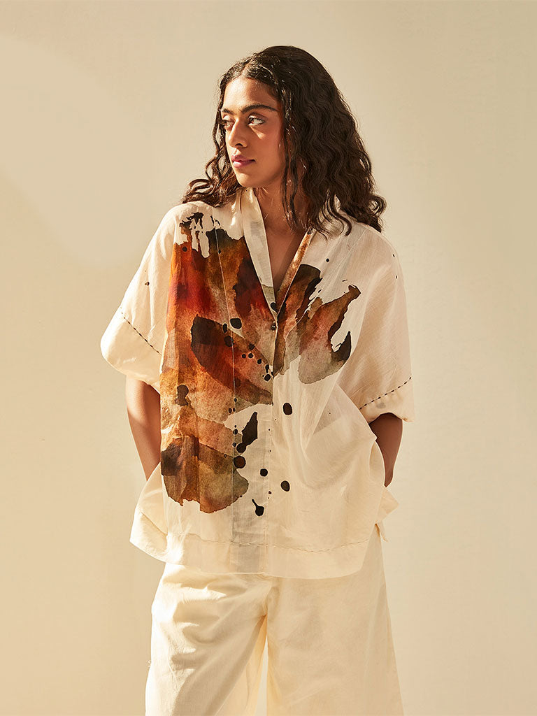 An easy shirt adorned with our delicate in-house print perfect for those who seek comfort and effortless style during the sunniest days. Crafted in soft cotton mul.
