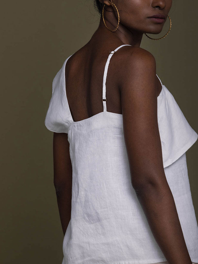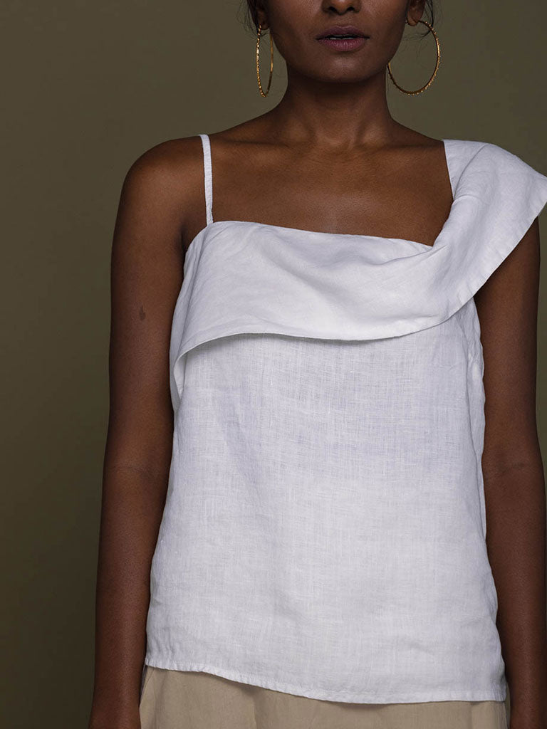 This one-shoulder flat strap top with a flattering neckline is the perfect statement piece for any occasion, day or night!