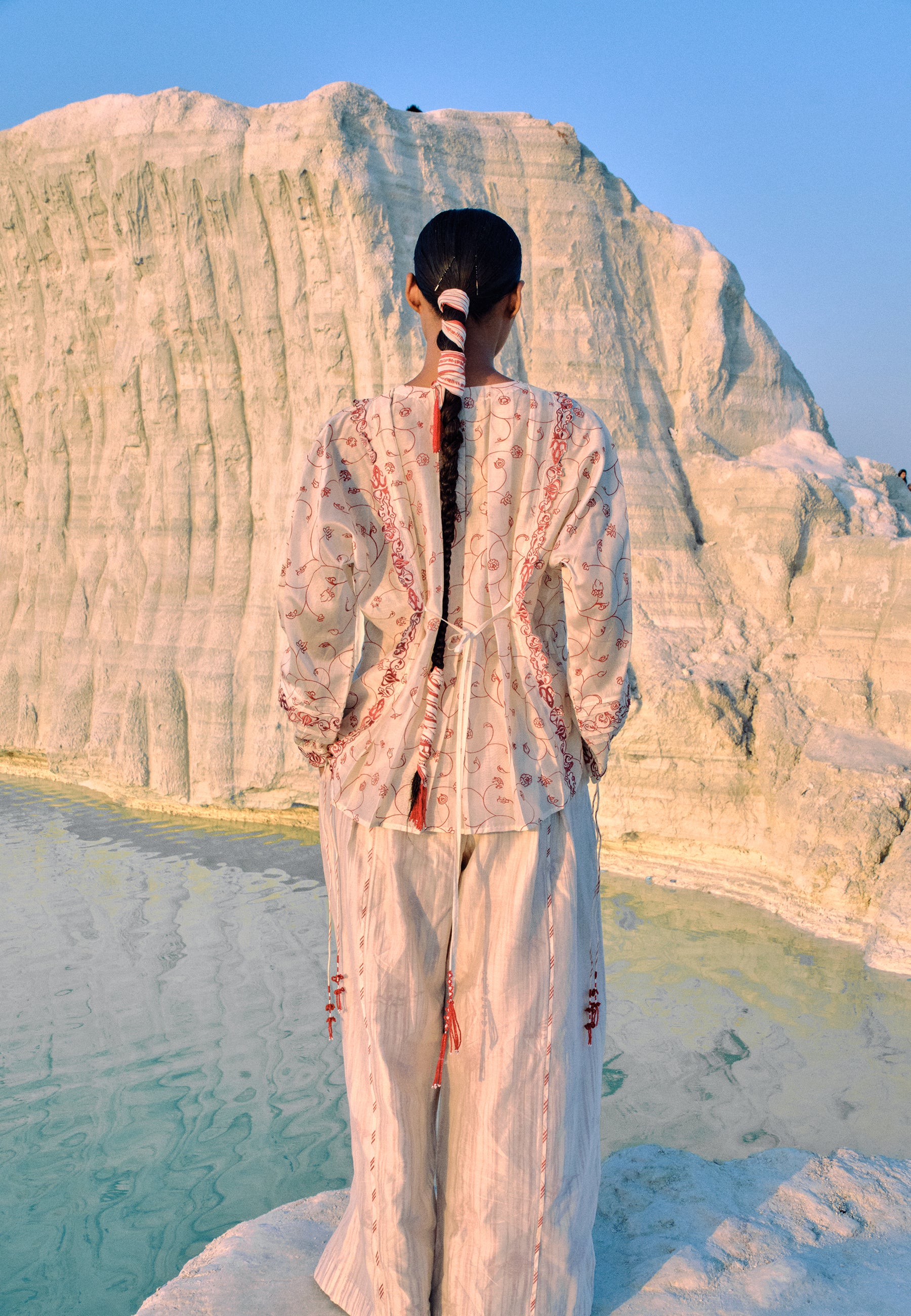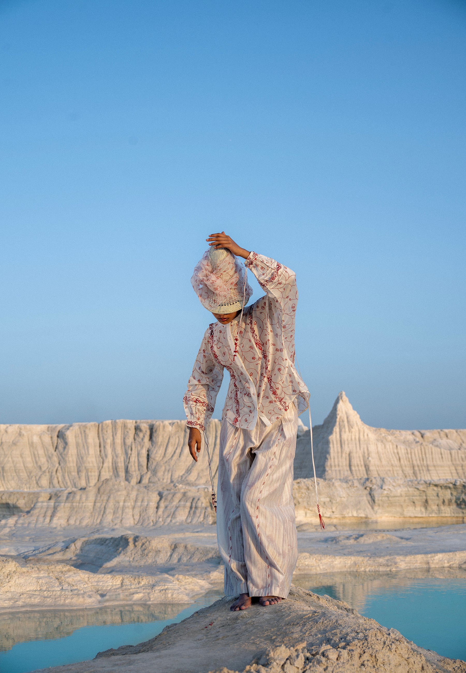 Techniques Used: Handmade Tassels. Hand- screen printing. Embroidered Lace.