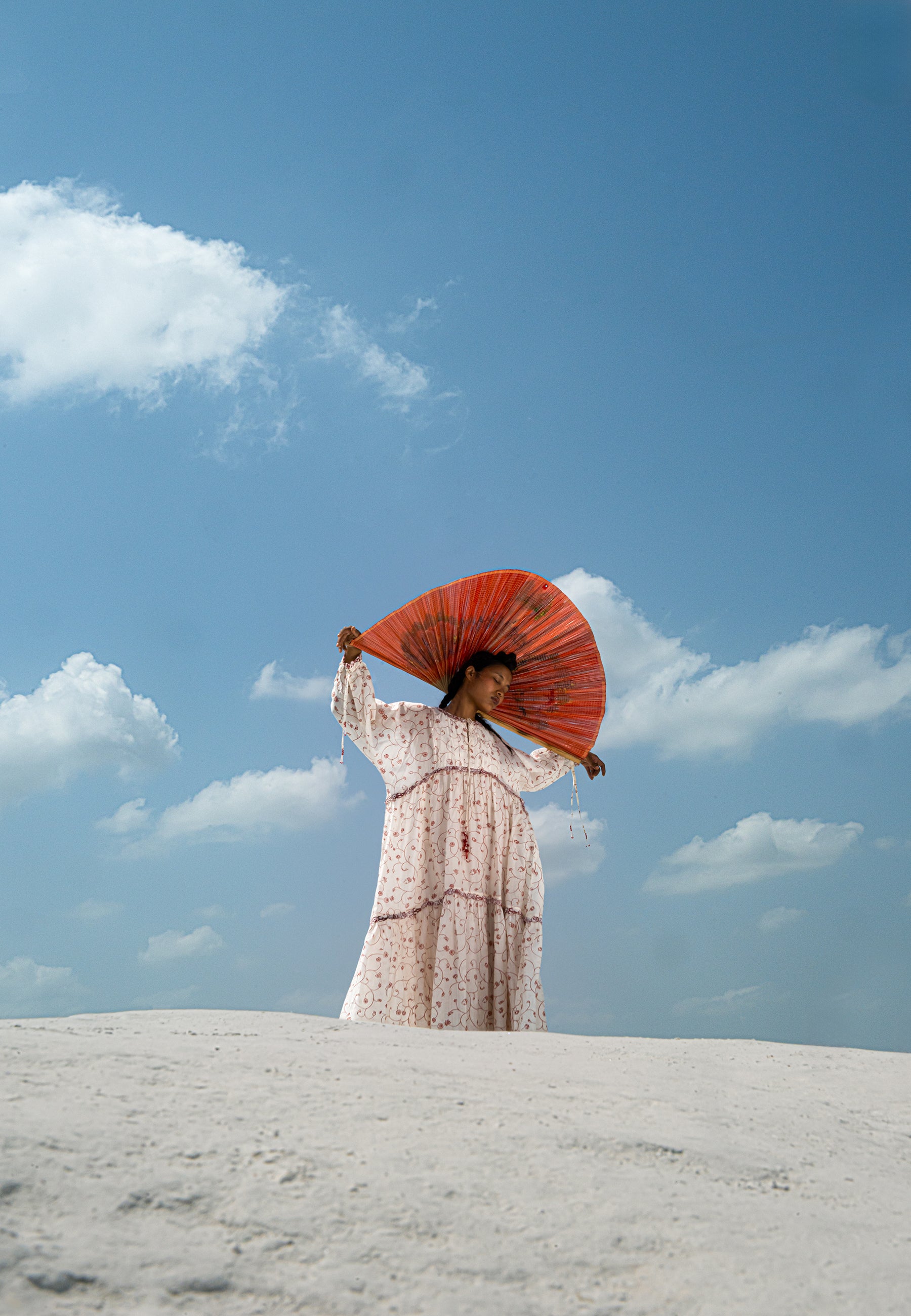 Crafted from hand-screen-printed cotton silk, the Min Maw Tier Dress blends elegance with ease. Soft dolman sleeves add relaxed movement, while delicate gathers and lace detailing trace the body. Tie-ups with handmade beaded tassels on both the front and sleeves allow adjustment and playful charm. Hours of artisanal labour ensure that every stitch, pleat, and embellishment reflects refined craftsmanship, making this piece a versatile, sophisticated wardrobe essential.