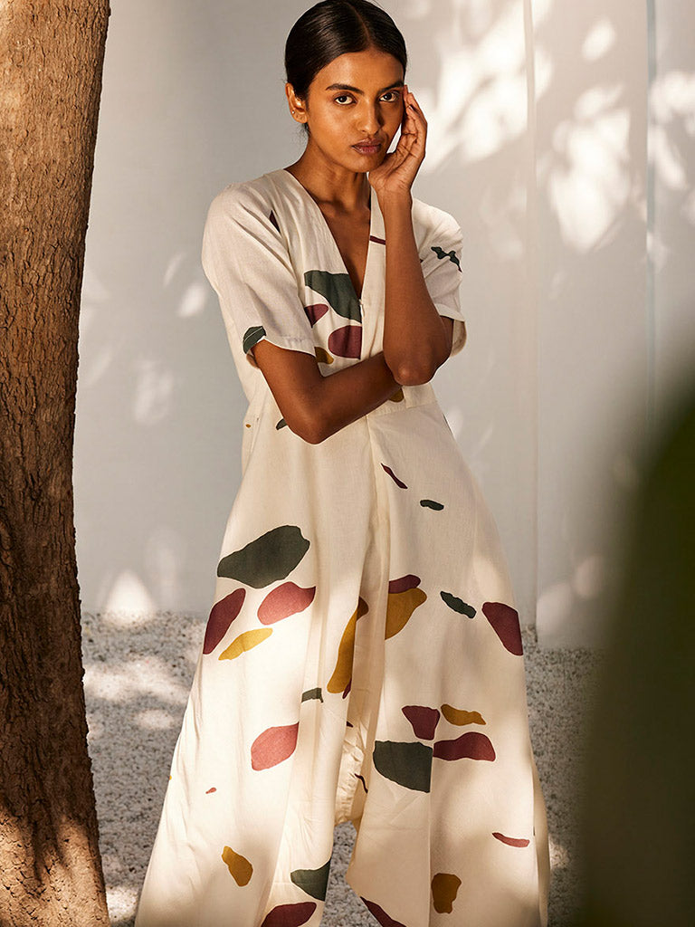 With a firm belief in the versatility of cotton variants and Indian handloom, the brand tries to do their part in promoting fair trade by working closely with artisans and weavers across the country to preserve the rich heritage and craft reservoir of India. Small weavers are the cornerstones of the business; as none of our products would be possible without their valuable contribution and immense skill set. Their design philosophy revolves around the idea of minimalism, clean cuts, and relaxed silhouettes, in pure fabrics, earthy tones and simple Indian motifs for prints. Handcrafted from scratch, each garment is a result of endless days of hard work that a team of weavers, dyers, craftsmen, and tailors put in for one finished product.